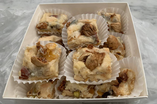 OUR ALL NEW COLLECTION! Here comes nougats...First, we have Fig Nougats. These are loaded with vitamins and other nutrients, thanks to the nuts present in them. They serve as an energy booster too, and is easy to chew since the texture is soft.